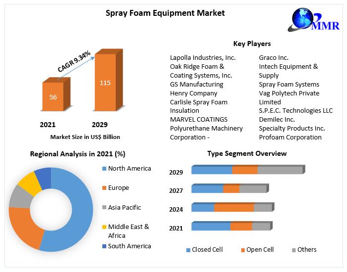 You can edit or delete your press release Spray Foam Equipment Market was valued at approximately US$ 56.49 billion in 2021. It is projected to grow at a CAGR of 9.34% and reach a market value of US$ 115.39 billion by 2029. here