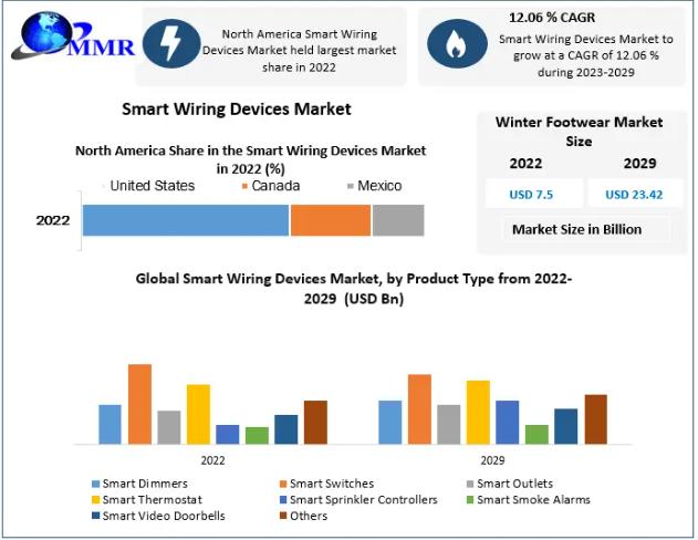 You can edit or delete your press release Smart Wiring Devices Market, valued at USD 7.5 billion in 2022, is anticipated to witness significant growth and reach USD 23.42 billion by 2029, registering a remarkable CAGR of 12.06%. The market report provides a comprehensive analysis of the market si here