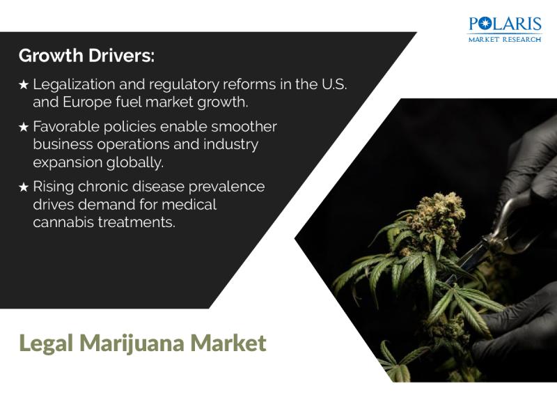 Polaris Market Research recently introduced the latest update on legal Marijuana Market that provides an extensive outlook of the market, analyzing key growth opportunities, challenges, risk factors, and emerging trends across diverse geographic regions. The report offers a definitive and meticulous analysis of the legal Marijuana market size, share, demand, key growth factors, segmentation, country-level overview, and forecast.