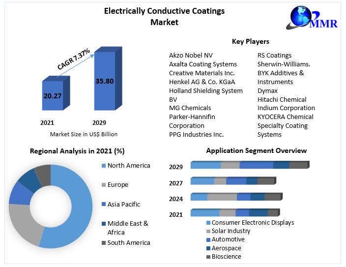 Electrically Conductive Coatings Market is poised for substantial growth, with a market size of USD 20.27 Bn. in 2021 and an expected CAGR of 7.37% from 2022 to 2029, reaching nearly USD 35.80 Bn. by 2029.