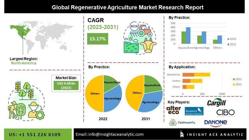 InsightAce Analytic Pvt. Ltd. announces the release of a market assessment report on the "Global Regenerative Agriculture Market Size, Share & Trends Analysis Report By Practice (Aquaculture, Holistic Planned Grazing, Agroforestry, Pasture Cropping, Agroecology, Silvopasture) And Application (Carbon Sequestration, Nutrient Cycling And Biodiversity)- Market Outlook And Industry Analysis 2031"The global regenerative agriculture market is estimated to reach over USD 31.88 billion by 2031, exhibiting a CAGR of 15.17% during the forecast period.