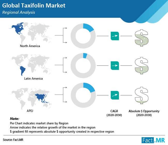 Fact.MR has studied the taxifolin market with detailed segmentation on the basis of purity, application, and key regions.