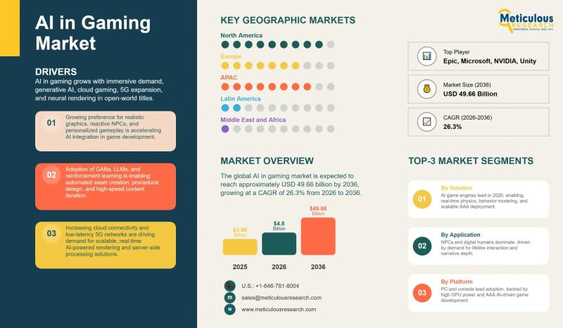 AI in Gaming Market to Reach USD 49.66 Billion by 2036, Growing at 26.3% CAGR