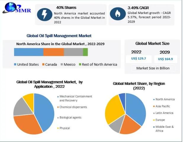 Regional Insights: The global oil spill management market is divided into five regions: North America, Europe, Asia Pacific, Middle East and Africa, and South America. North America accounted for more than 40 percent of the market in 2022, driven by oil and gas exploration and production operations and the presence of a severe regulatory framework.
