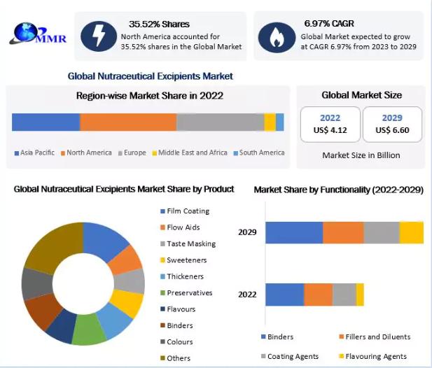 You can edit or delete your press release The Global Nutraceutical Excipients Market is poised for significant growth, with a forecasted value of nearly USD 6.6 Bn by 2029, growing at a CAGR of 6.97 Percent from 2023 to 2029. It valued at USD 4.12 Bn in 2022 here