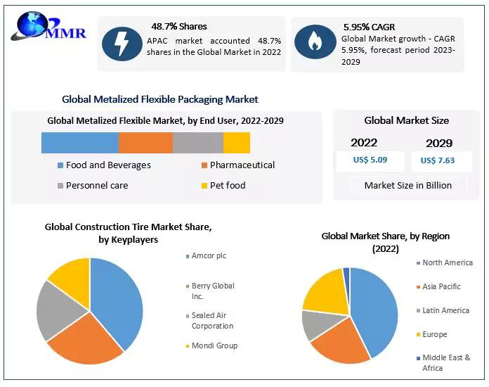 You can edit or delete your press release The Global Metalized Flexible Packaging Market, valued at USD 5.09 Bn in 2022, is projected to grow at a CAGR of 5.95 Percent from 2023 to 2029, reaching nearly USD 7.63 Bn, according to a new report. here