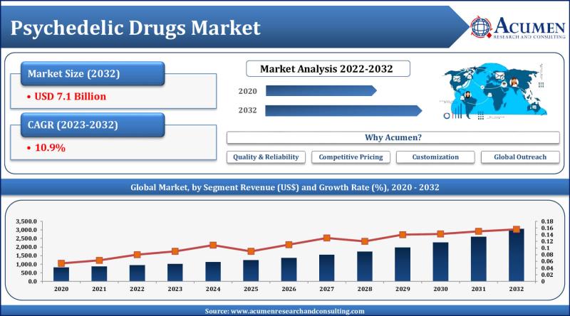Psychedelic Drugs Market Opportunity Potential: Estimated USD 7.1 Billion by 2032 | CAGR 10.9% Driving Growth