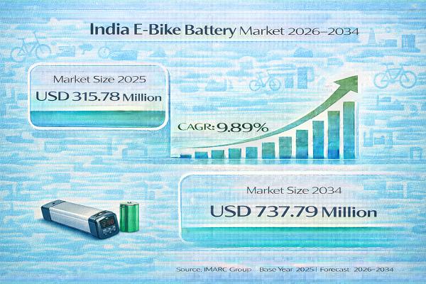 According to IMARC Group's report titled "India E-Bike Battery Market Size, Share, Trends and Forecast by Battery Type, Battery Pack Position Type, and Region, 2026-2034" the report offers a comprehensive analysis of the industry, including market share, growth, trends, and regional insights.