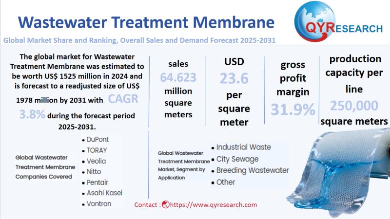 Global leading market research publisher QYResearch published the release of its latest report, "Wastewater Treatment Membrane - Global Market Share, Ranking, Sales, and Demand Forecast 2025-2031". This in-depth report provides a complete analysis of the global Wastewater Treatment Membrane market, offering critical insights into market size, share, demand, industry development status, and future forecasts. Whether you're a…