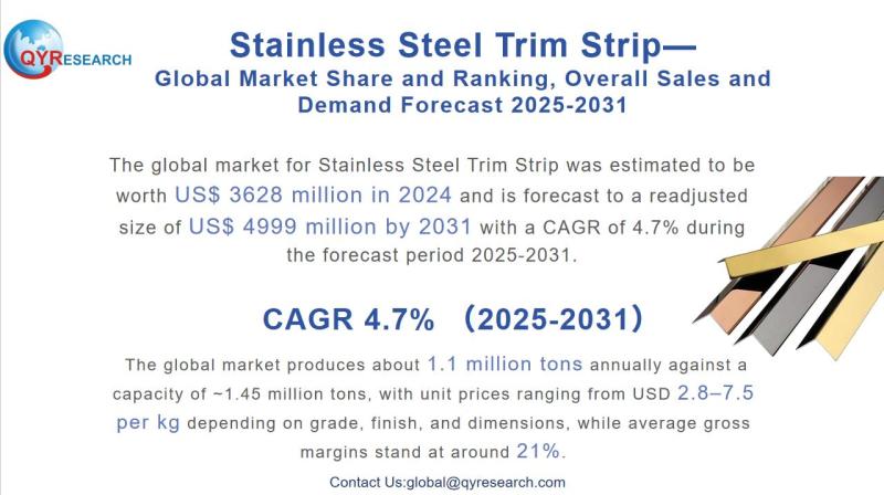 Global Leading Market Research Publisher QYResearch announces the release of its latest report "Stainless Steel Trim Strip - Global Market Share and Ranking, Overall Sales and Demand Forecast 2025-2031". Based…