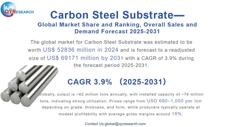 Global Leading Market Research Publisher QYResearch announces the release of its latest report "Carbon Steel Substrate - Global Market Share and Ranking, Overall Sales and Demand Forecast 2025-2031". Based on current…