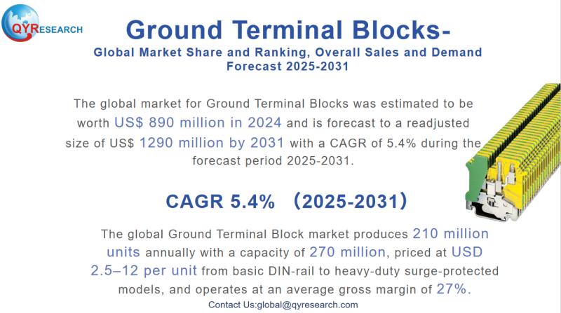 Global leading market research publisher QYResearch published the release of its latest report, "Ground Terminal Blocks - Global Market Share, Ranking, Sales, and Demand Forecast 2025-2031". This in-depth report provides a complete analysis of the global Ground Terminal Blocks market, offering critical insights into market size, share, demand, industry development status, and future forecasts. Whether you're a…