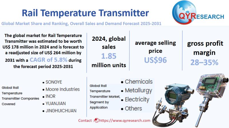 Global leading market research publisher QYResearch published the release of its latest report, "Rail Temperature Transmitter - Global Market Share, Ranking, Sales, and Demand Forecast 2025-2031". This in-depth report provides a complete analysis of the global Rail Temperature Transmitter market, offering critical insights into market size, share, demand, industry development status, and future forecasts. Whether you're a…
