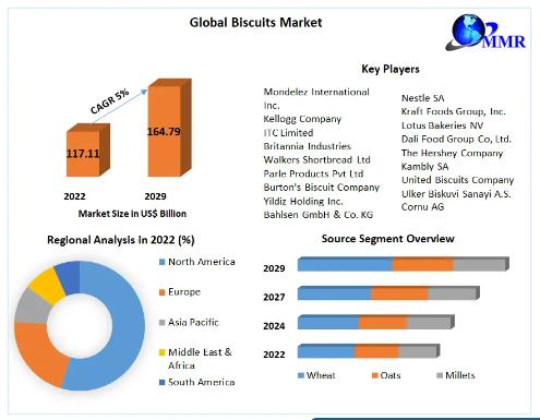 You can edit or delete your press release The Biscuits Market was valued at USD 117.11 Bn in 2022, and it is expected to grow at a CAGR of 5.0 Percent from 2023 to 2029, reaching nearly USD 164.80 Bn. here