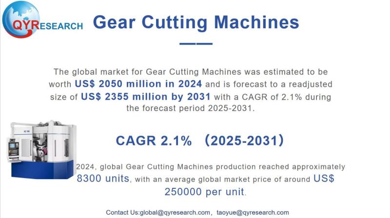 The global market for Gear Cutting Machines was estimated to be worth US$ 2050 million in 2024 and is forecast to a readjusted size of US$ 2355 million by 2031 with a CAGR of 2.1% during the forecast period 2025-2031.