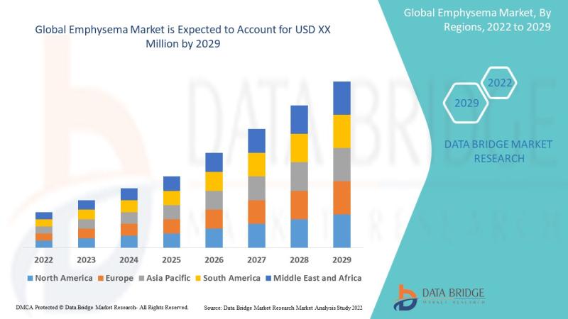 The credible Emphysema market report covers a thorough study of current situation of the global market along with several market dynamics. The major areas of market analysis such as market definition, market segmentation, competitive analysis and research methodology are studied very carefully and precisely in the whole report. And not to mention, the report is amazingly characterized by using several charts, graphs and tables depending on the extent of data and information involved.Data Bridge Market Research analyses a growth rate in the global emphysema market in the forecast period 2022-2029. The expected CAGR of global emphysema market is tend to be around 6.50% in the mentioned forecast period. In addition to the market insights such as market value, growth rate, market segments, geographical coverage, market players, and market scenario, the market report curated by the Data Bridge Market Research team also includes in-depth expert analysis, patient epidemiology, pipeline analysis, pricing analysis, and regulatory framework.