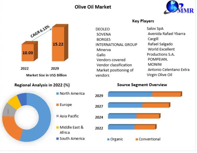 Olive Oil Market size valued at USD 10.03 Bn. The market is anticipated to witness a steady growth rate of 6.13% during the forecast period of 2023 to 2029
