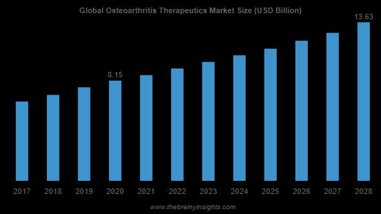 As per the report published by The Brainy Insights, the global osteoarthritis therapeutics market is expected to grow from USD 8.15 billion in 2020 to USD 13.63 billion by 2028, at a CAGR of 6.56% during the forecast period 2021-2028. The Europe region dominated the global osteoarthritis therapeutics market and held the major market share of 46.42% in the year 2020. Increasing prevalence of osteoarthritis along with the rising geriatric population, driving the growth of the market. On the other hand, the Asia Pacific region is projected to grow at the highest CAGR of 7.4% over the forecast period. Increasing awareness about the osteoarthritis therapeutics boosting the growth of the market.Request sample copy of this report at: https://www.thebrainyinsights.com/enquiry/sample-request/12565