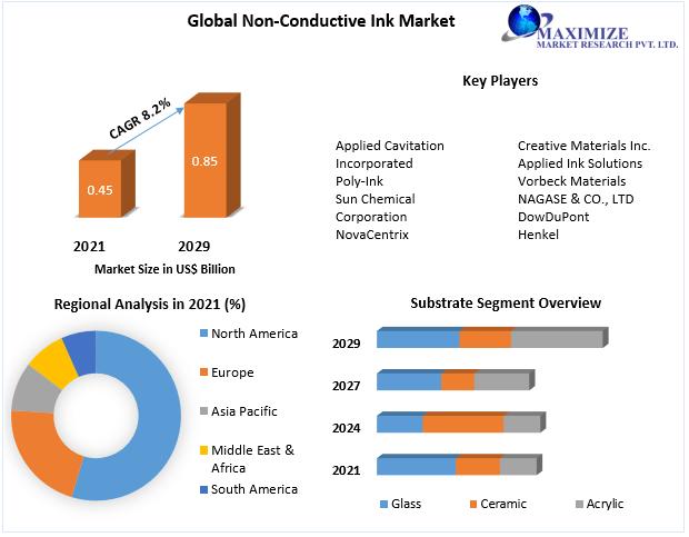 Non-Conductive Ink Market to reach a remarkable CAGR of 8.2 Percent during the forecast period, reaching a value of USD 0.85 Bn by 2029.