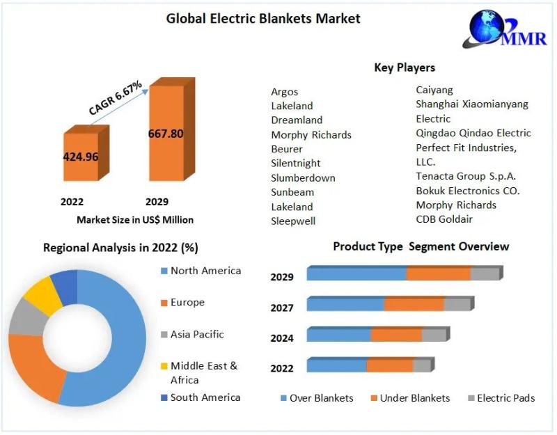 Electric Blankets Market to reach USD 667.80 Million by 2029, emerging at a CAGR of 6.67 percent and forecast 2023-2029Electric Blankets Market Report Scope: