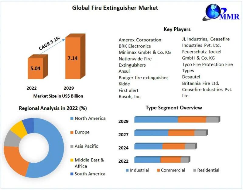 Fire Extinguisher Market to reach USD 7.14 Bn by 2029, emerging at a CAGR of 5.1 percent and forecast (2022-2029)
