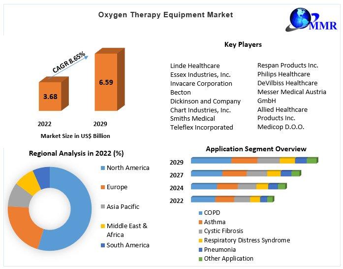 Oxygen Therapy Equipment Market size is expected to reach USD 6.59 Bn by 2029. by 2029, emerging at a CAGR of 8.65 percent and forecast 2023-2029