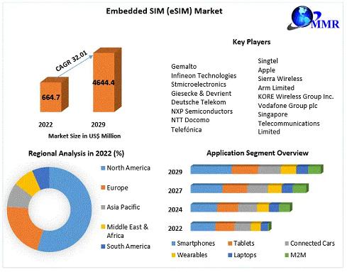 Embedded SIM eSIM Market to reach USD 4644.4 Mn by 2029, emerging at a CAGR of 32.01 percent and forecast 2023-2029