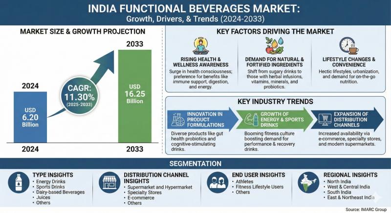 India Functional Beverages Market to Reach USD 16.25 Billion by 2033, Growing at …
