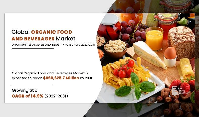 The global organic food and beverages industry generated $187.48 billion in 2020, and is expected to reach $860.62 billion by 2031, witnessing a CAGR of 14.9% from 2022 to 2031.