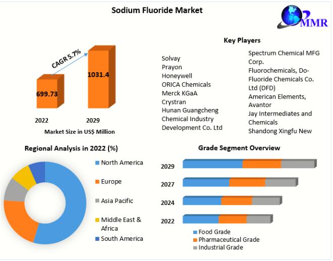 Sodium Fluoride Market value from USD 699.73 million in 2022 USD 1031.47 million by 2029, (CAGR) of 5.7 Parcentage