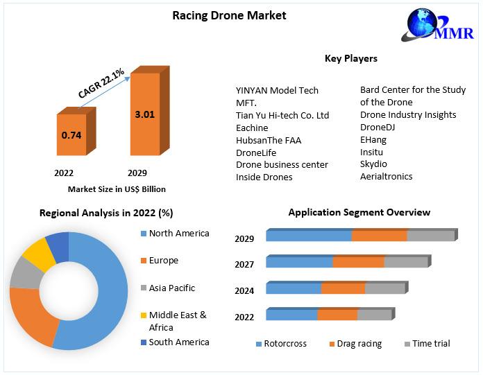 You can edit or delete your press release Racing Drone Market revenue is anticipated to rise at a rate of 22.1 % from 2023 to 2029, reaching almost USD 3.01 Bn. in 2029. here