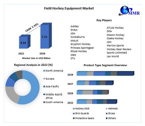 Global Field Hockey Equipment Market valued at USD 7.31 billion in 2029, is projected to experience steady growth with an estimated Compound Annual Growth Rate (CAGR) of 2.45%.