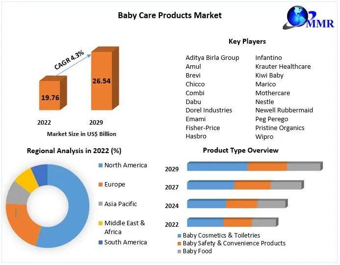 Baby Care Products Market Report Scope:Baby Care Products Market is expected to reach US$ 26.54 billion by 2029, at a CAGR of 4.3% during the forecast period.