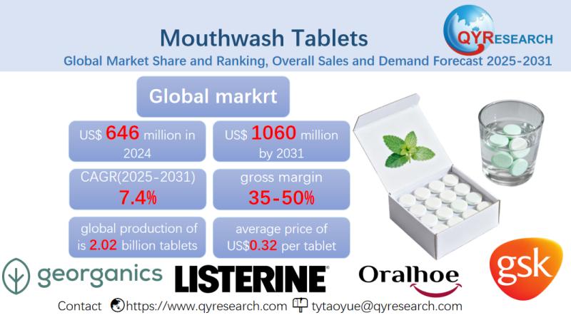 Global leading market research publisher QYResearch published the release of its latest report, "Mouthwash Tablets - Global Market Share, Ranking, Sales, and Demand Forecast 2025-2031". This in-depth report provides a complete analysis of the global Mouthwash Tablets market, offering critical insights into market size, share, demand, industry development status, and future forecasts. Whether you're a stakeholder, investor, or…