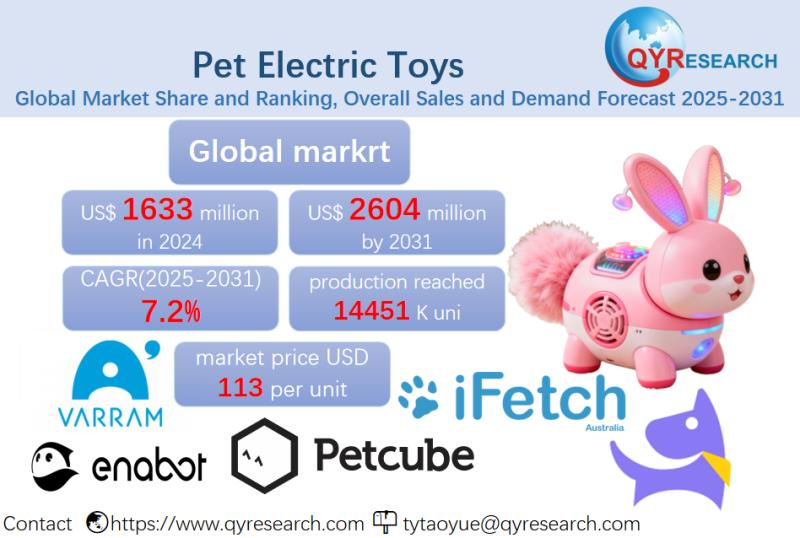 Global leading market research publisher QYResearch published the release of its latest report, "Pet Electric Toys - Global Market Share, Ranking, Sales, and Demand Forecast 2025-2031". This in-depth report provides a complete analysis of the global Pet Electric Toys market, offering critical insights into market size, share, demand, industry development status, and future forecasts. Whether you're a…