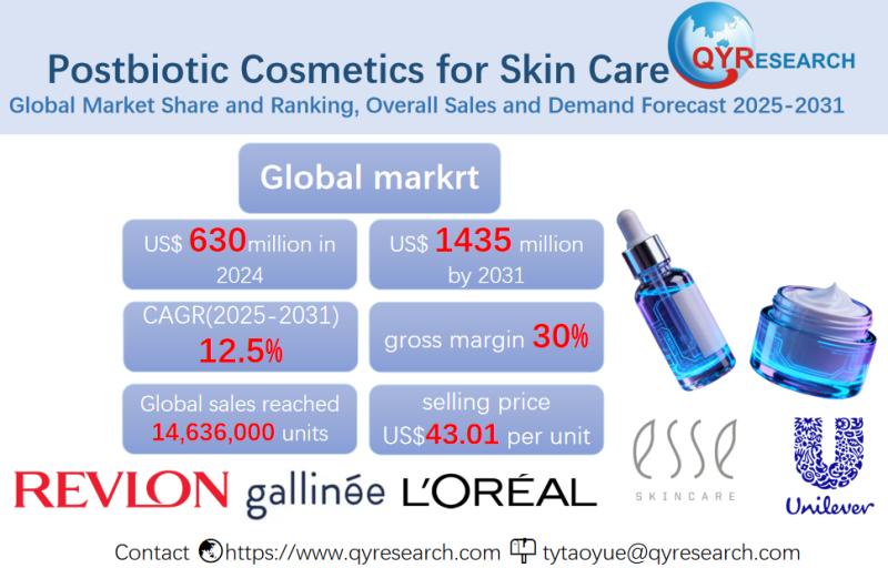 Global leading market research publisher QYResearch published the release of its latest report, "Postbiotic Cosmetics for Skin Care - Global Market Share, Ranking, Sales, and Demand Forecast 2025-2031". This in-depth report provides a complete analysis of the global Postbiotic Cosmetics for Skin Care market, offering critical insights into market size, share, demand, industry development status,…