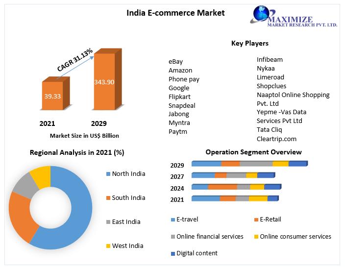 5.9.2023: India E-commerce Market expected to grow at a CAGR of 31.13% through 2021 to 2029, reaching nearly USD343.90 Bn.India E-commerce Market Report Scope and Research Methodology