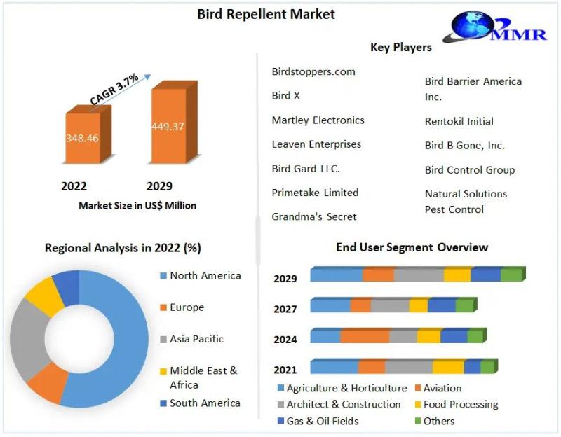 You can edit or delete your press release Bird Repellent Market to reach USD 449.37 Mn by 2029, emerging at a CAGR of 3.7 percent and forecast 2023-2029 here