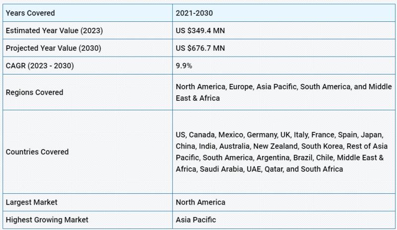 - Covers Market data for the years 2021, 2022, 2023, 2026, and 2030