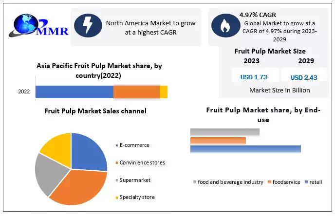 Fruit Pulp Market size is expected to reach USD 26.5 Bn. by 2029, emerging at a CAGR of 6.3 percent and forecast 2023-2029