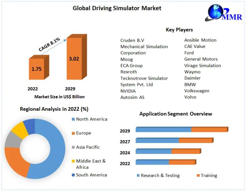You can edit or delete your press release The Driving Simulator Market was valued at US$ 1.75 Bn. in 2022 and is expected to reach nearly US$ 3.02 Bn. by 2029, growing at a CAGR of 8.1% from 2023 to 2029 here