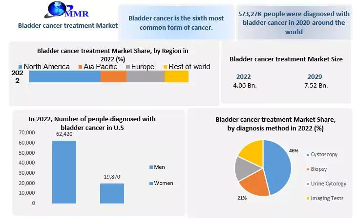 You can edit or delete your press release Bladder Cancer Treatment Market size for bladder cancer treatment reached USD 4.06 billion in 2022 and is projected to grow at a robust CAGR of 9.2% during the forecast period, reaching USD 7.52 billion by 2029. here