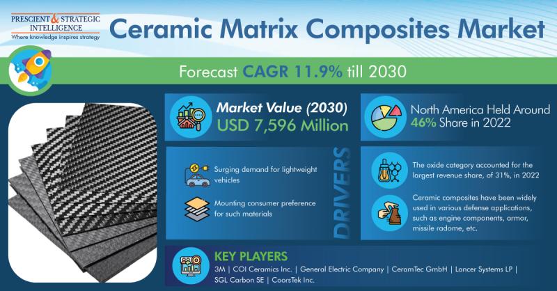 The global ceramic matrix composites market is experiencing growth and is projected to advance at the compound annual rate of growth of 11.9% during the forecast period to reach USD 7,596 million by 2030.