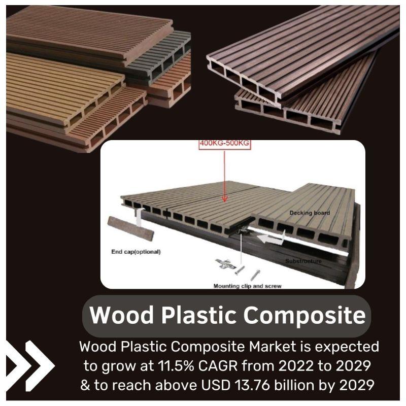 Global Wood Plastic Composite Market growing at a CAGR of 11.5%, and it is expected to reach USD 13.76 billion by 2029, over the forecast period 2023-2029.