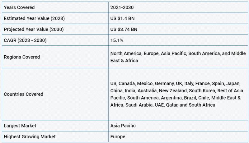 - Covers Market data for the years 2021, 2022, 2023, 2026, and 2030