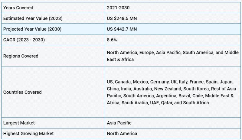 - Covers Market data for the years 2021, 2022, 2023, 2026, and 2030