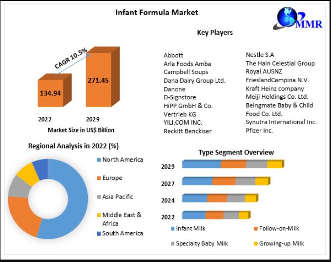 Infant Formula Market size was valued at US$ 134.94 Bn. in 2022 and the total Infant Formula revenue is expected to grow at 10.5% from 2023 to 2029, reaching nearly US$ 271.45 Bn.Infant Formula Market Report Scope and Research Methodology