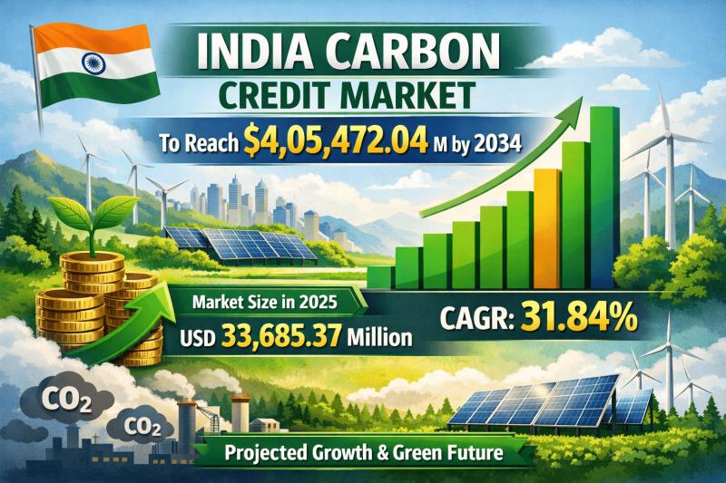 India Carbon Credit Market to Reach $4,05,472.04 M by 2034 | CAGR 31.84% Growth
