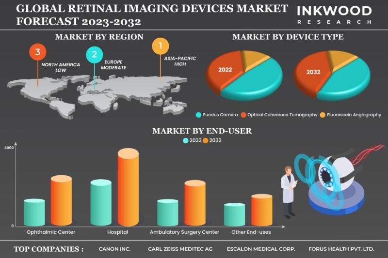 According to a new market research report launched by Inkwood Research, the Global Retinal Imaging Devices Market is anticipated to generate revenue of $9322.89 million by 2032, evolving at a CAGR of 5.93% between 2023 and 2032Browse 41 Market Data Tables and 44 Figures spread over 200 Pages, along with an in-depth analysis of the Global Retinal Imaging Devices Market by Device Type, End Use, & by Geography.