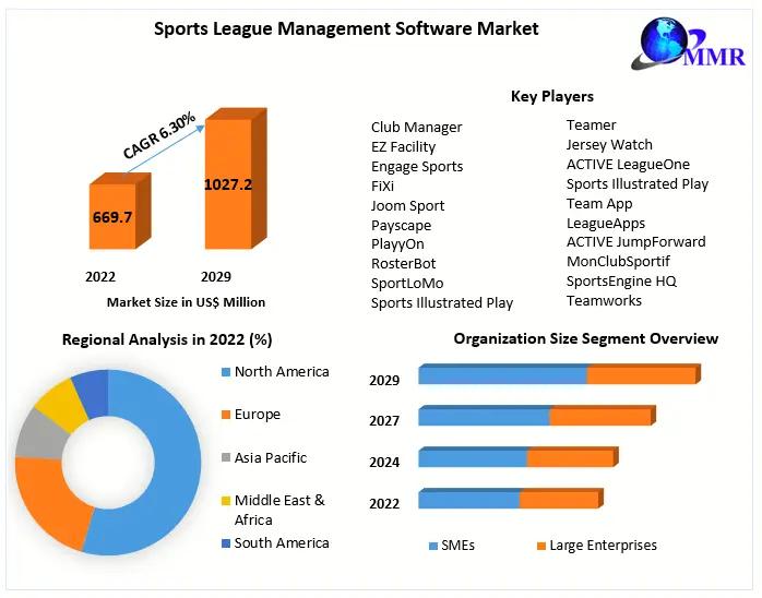 You can edit or delete your press release Global Sports League Management Software Market was valued at USD 669.7 Mn. in 2022 and is projected to reach USD 1027.2 Mn. by 2029, exhibiting a robust CAGR of 6.30% during the forecast period. here